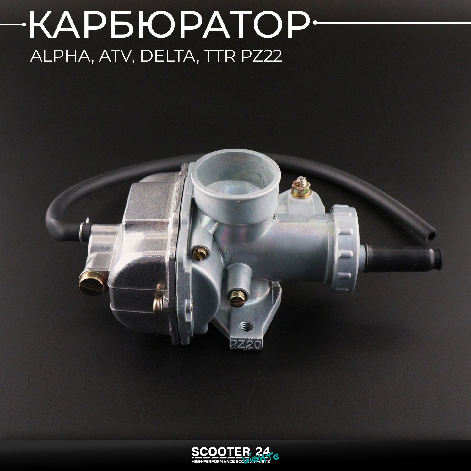 Карбюратор PZ22 на мопед / мотоцикл и питбайк 100-250 кубов Alpha / Delta (Альфа / Дельта / Орион Омакс ТТР)